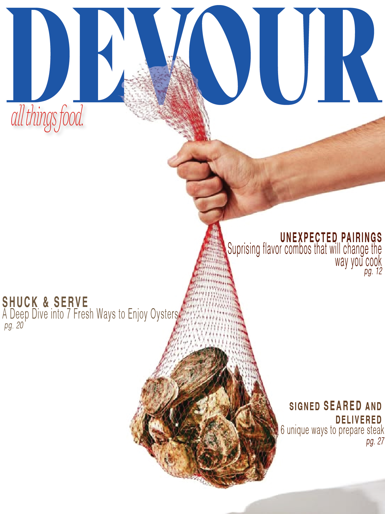 Devour is a playful food magazine concept that explores the intersection of food and design through bold layouts, expressive typography, and vibrant imagery. The project includes magazine covers, spreads, and mockups, all designed to feel contemporary, energetic, and visually driven, targeting a young, design-conscious audience.